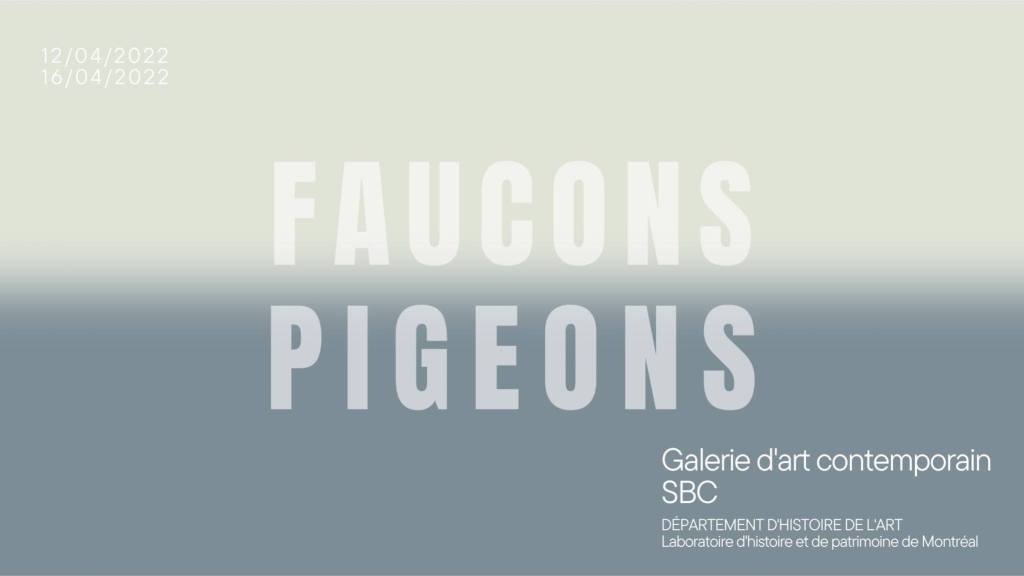 Falcons and pigeons have been nesting in Montreal for a long time. Falcons live high up on the roofs of skyscrapers, out of sight. Pigeons, on the other hand, are invisible because of their numbers and the banality of their presence, which is often considered harmful. Both species have close ties with humans. However, the way we look at each of them today is not the same, whether it is through a scientific, artistic or civic lens.