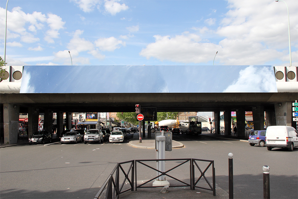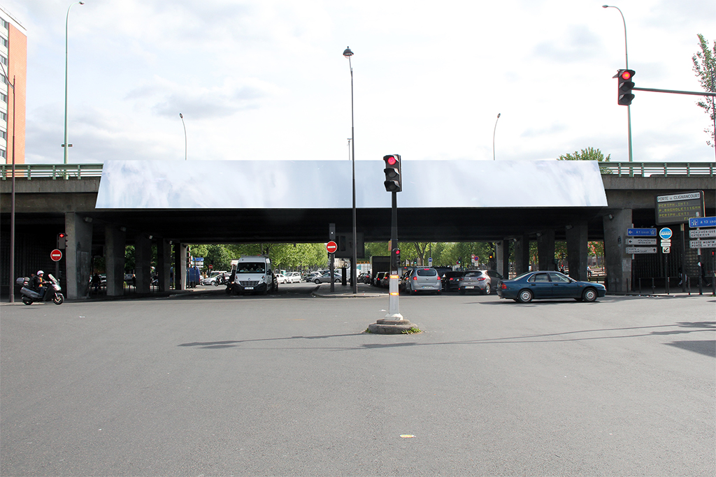 Lieux perdus vise à rendre visuellement absent la limite physique du périphérique qui séparent spatialement et socialement, Paris de sa banlieue nord, Saint-Ouen. À travers une ouverture et une extension spatiale symbolique, créée par des panneaux miroir, l’objectif est de manifester par l’absence une nouvelle perception spatiale des limites urbaines et de déstabiliser l’expérience ordi- naire des passants.